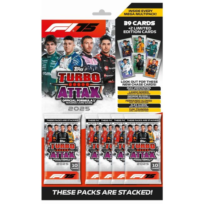 Get ready for the thrill of the 2025 Formula 1 season with the brand-new F1 Turbo Attax 2025 Multipacks from Topps. Perfect for collectors, fans, and trading card enthusiasts, each multipack is packed with excitement and exclusive content to help you build the ultimate F1 card collection.